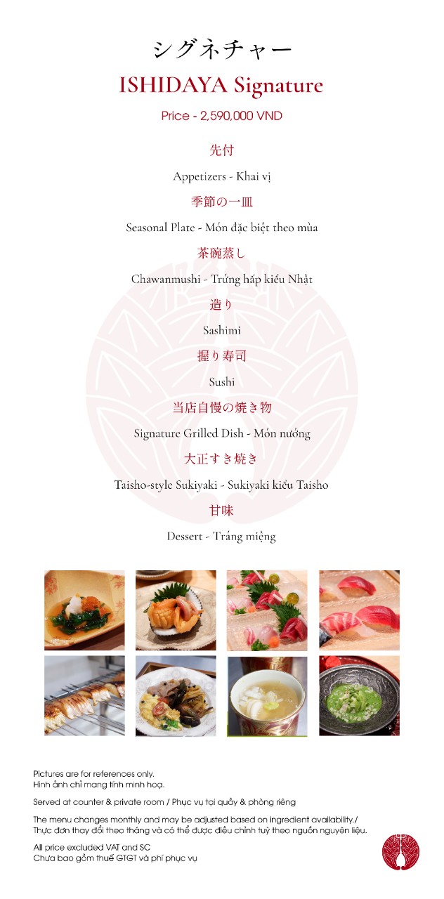 Menu may change by stock availability